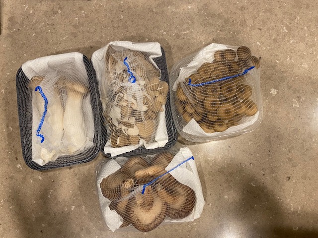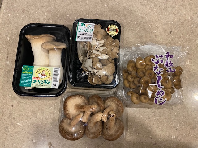 シイタケ、エリンギ、マイタケ、シメジ。(エノキは歯科矯正中の娘に不評)