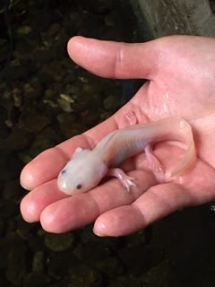 ↓ウーパールーパーにも触れられます。苦手な方、すみません。。