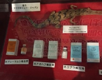 ヘビは得意ではない私も、抗ヘビ毒血清エリアを見つけて思わず近づく。