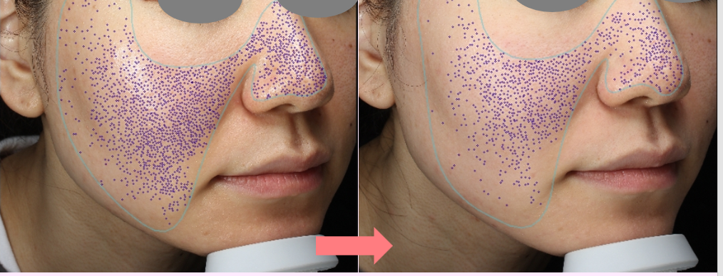 実際に写真を解析すると、開いた毛穴が減っていることが確認できました。