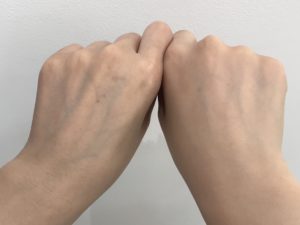 わかりますか!?加工なしで、左がそのまま✋右がサンスクリーンプライマーをつけた手です????????