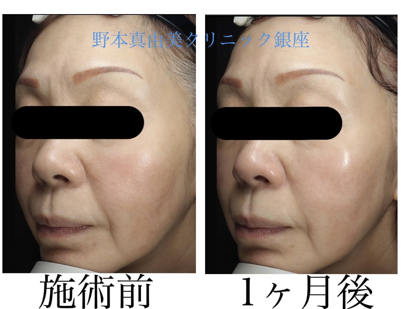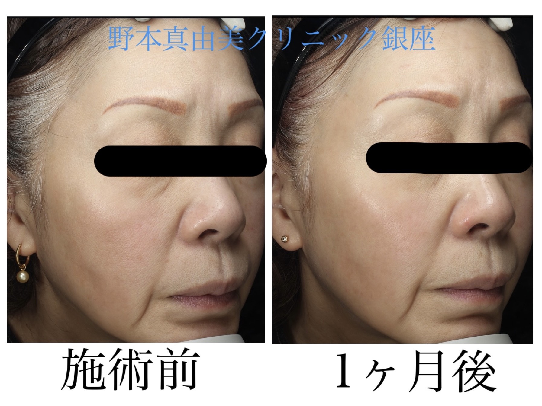 右側の変化をみると、頬がリフトアップし目の下の小じわやたるみが減っています。