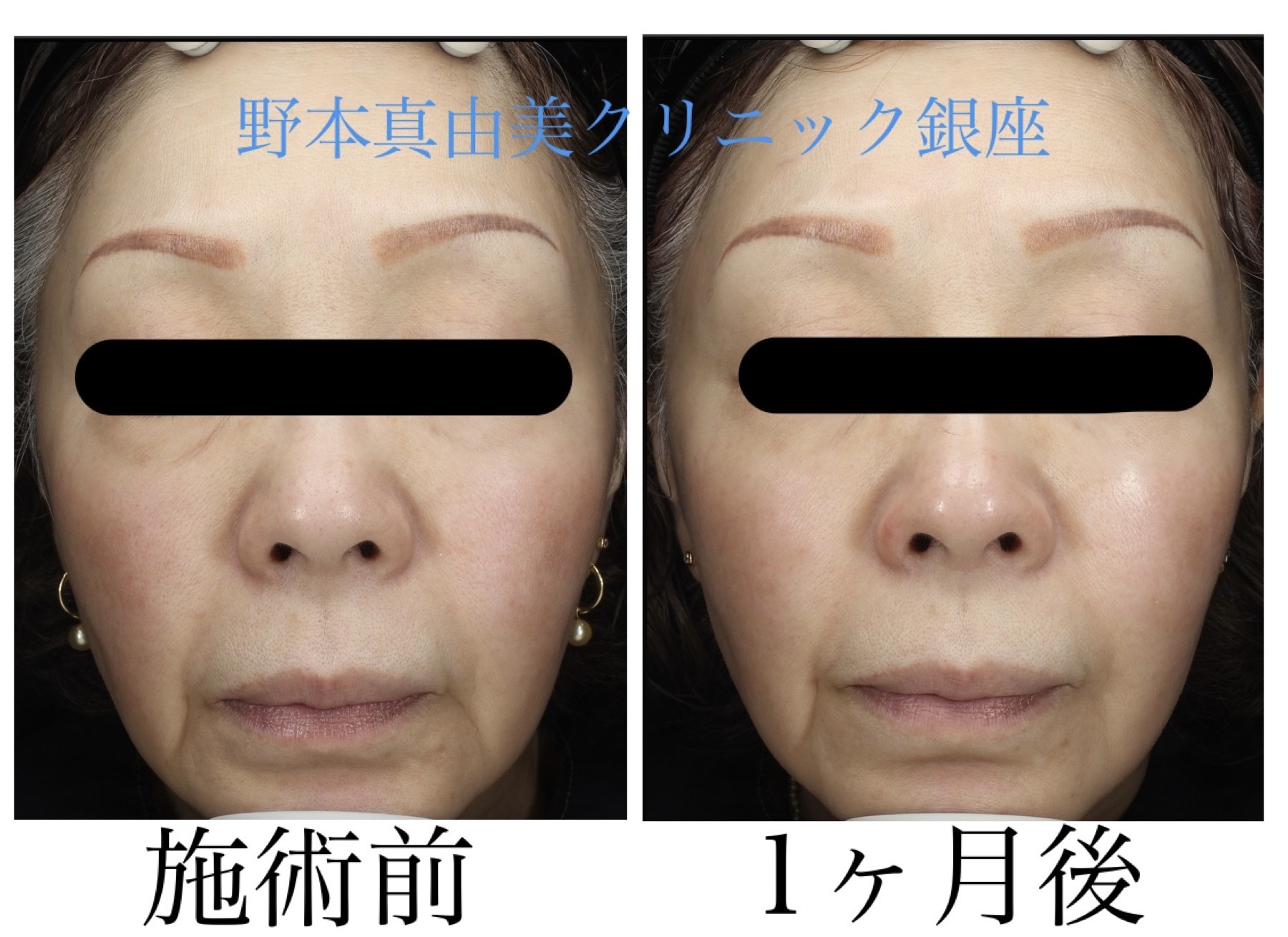 正面からの変化をみても、頬がリフトアップしまるくなり、目の下のハリがでています。