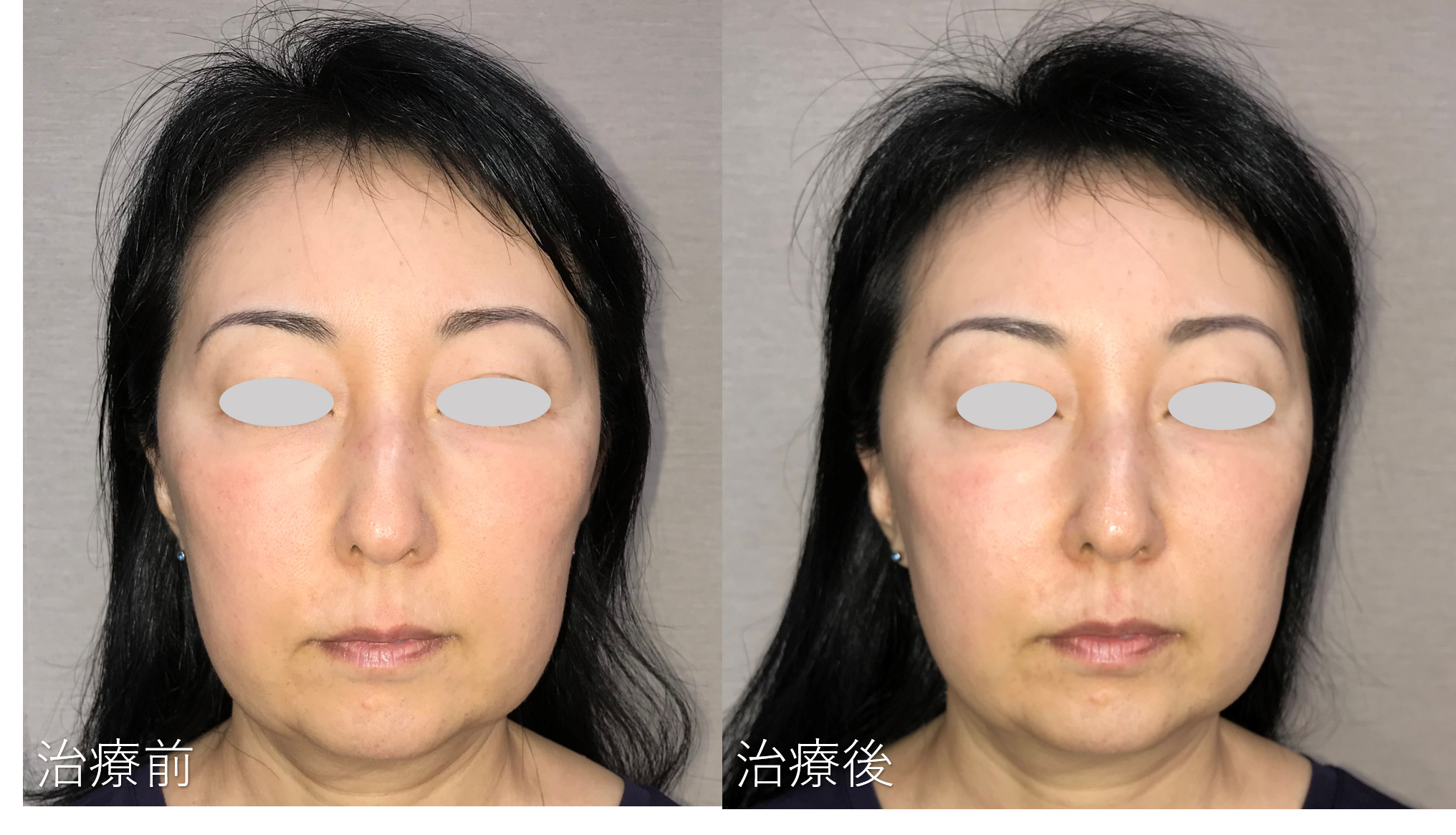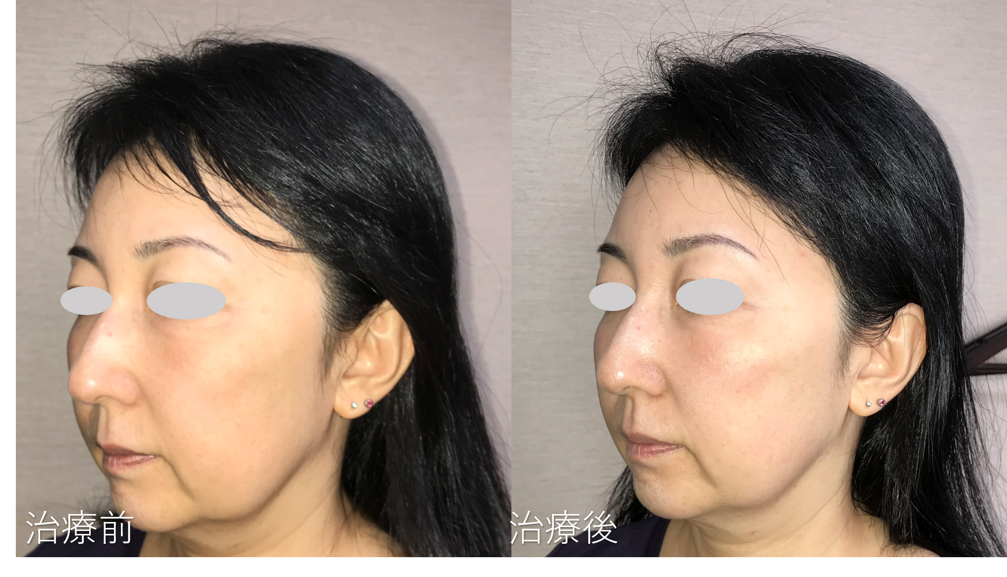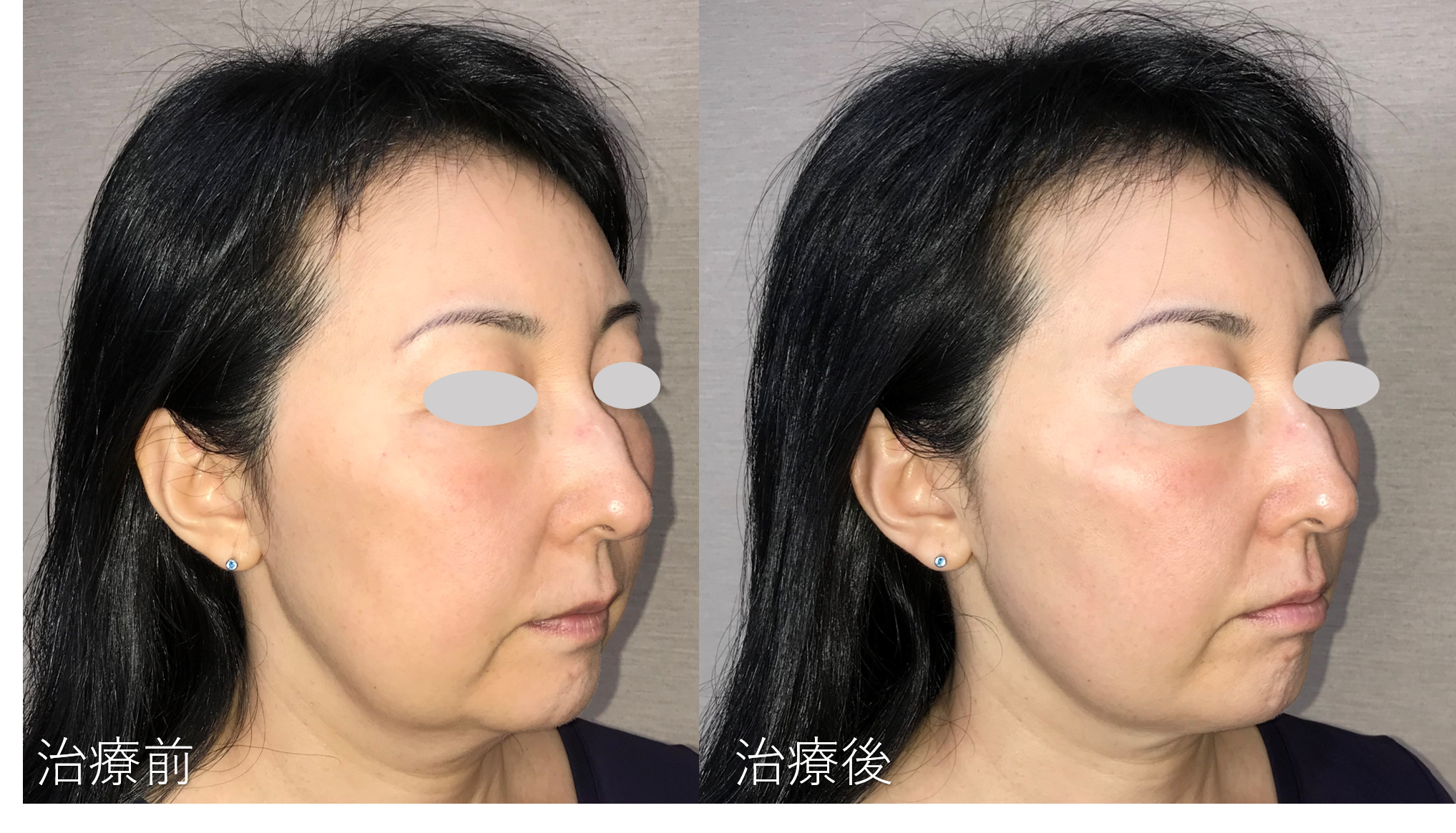 フェイスラインのもたつきがすっきりして頬のトップの位置が上がっているのがわかります。