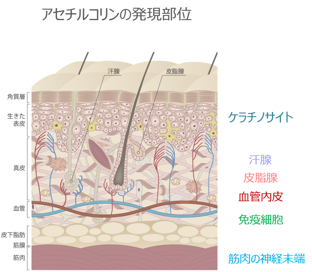 表皮のケラチノサイトにもアセチルコリンは発現しています。
