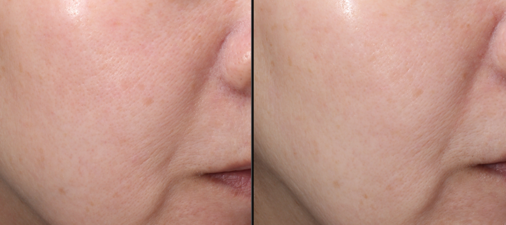 12週間経過すると、頬~ほうれい線周囲の毛穴の改善がしっかり認められました。