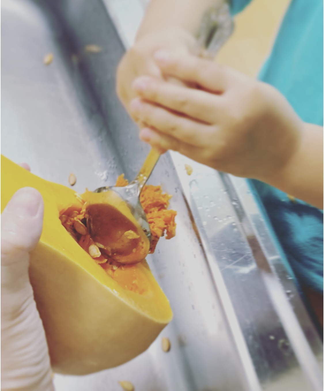 娘と一緒に種取を。