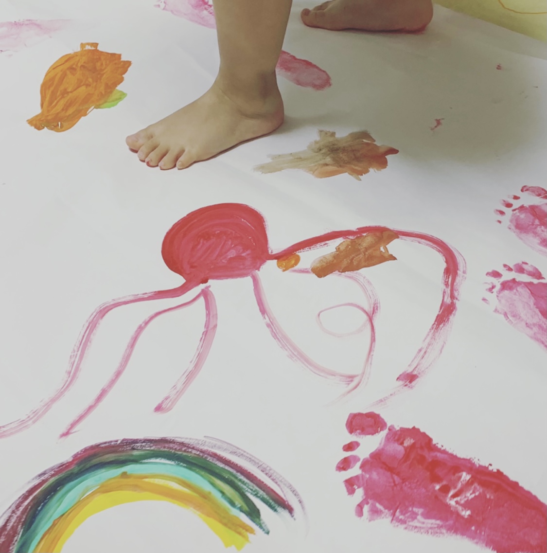 手足に筆で色を塗り ペタペタ