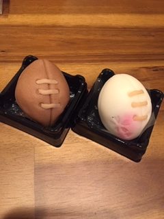 夕食後はラグビーボール和菓子を頂きました。