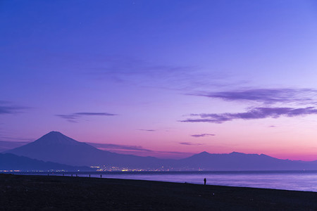 紫がかった雲が細くたなびいているのもいい。