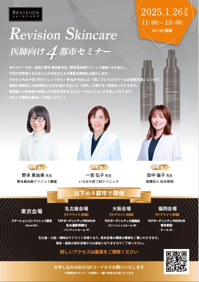 医師の部は、一宮先生がDEJフェイスクリームとデイリーブースティングセラムの使い方、