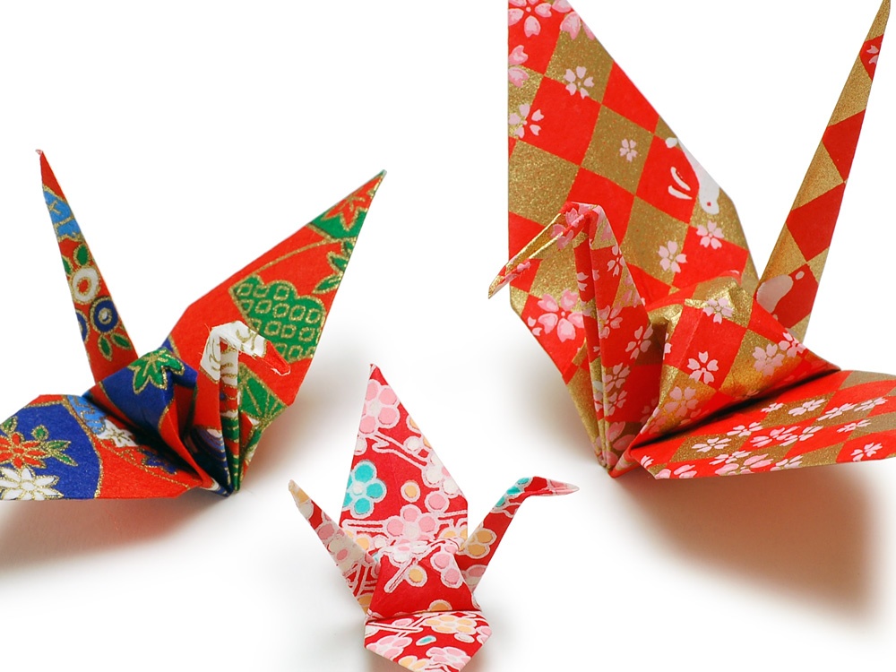 ライスシャワーでなく折り鶴シャワーで二人を祝福。