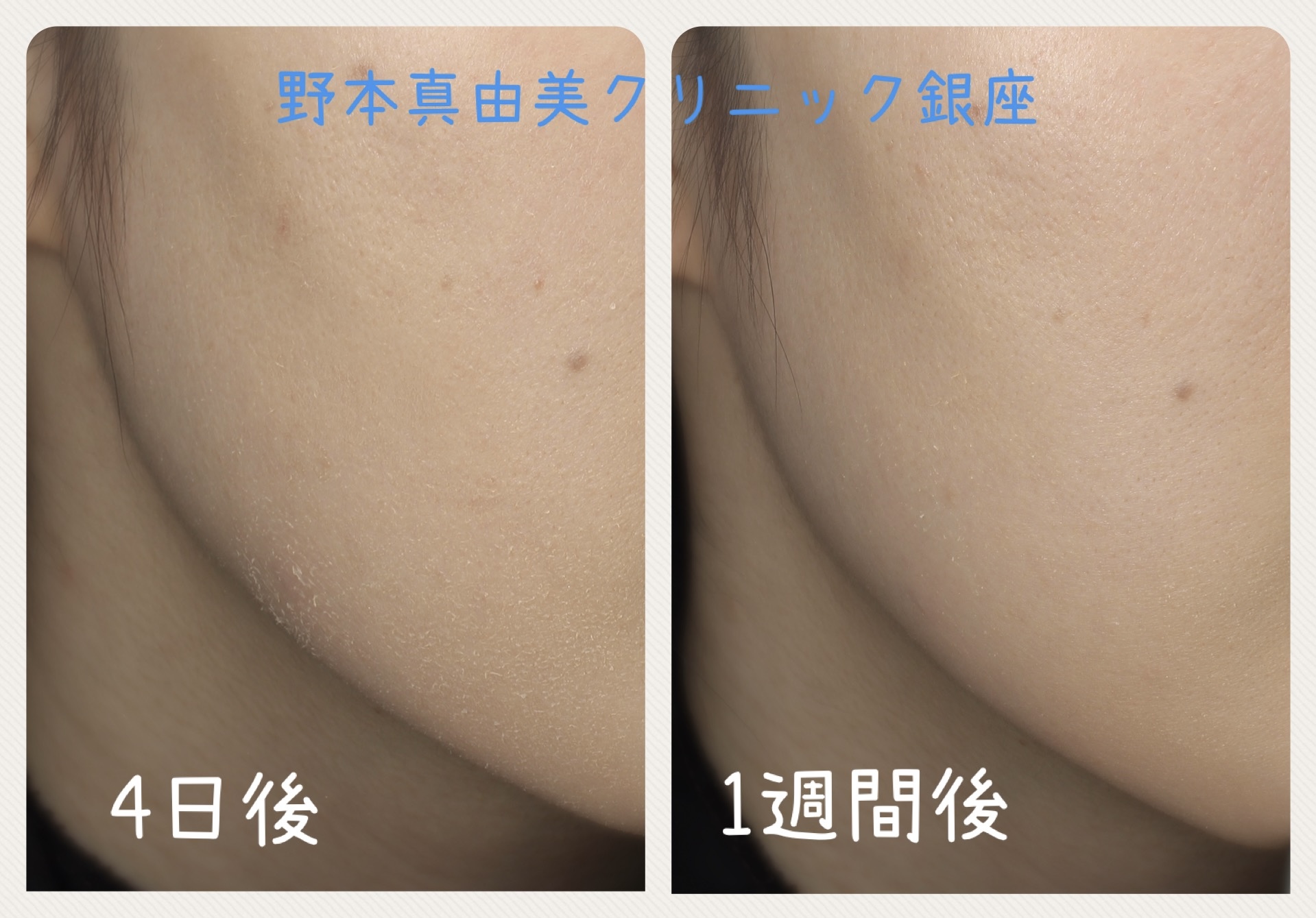 施術直後からコラーゲンピールにより肌表面が滑らかな質感になり、