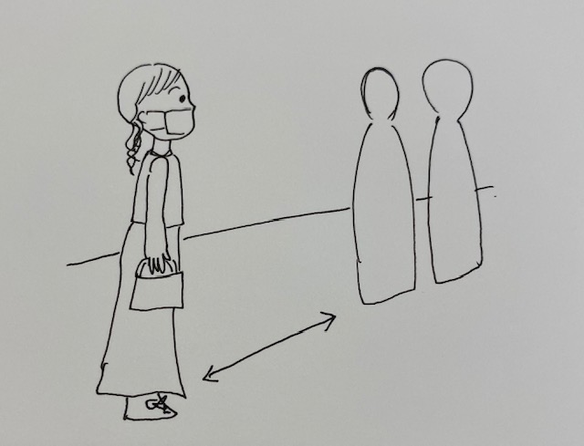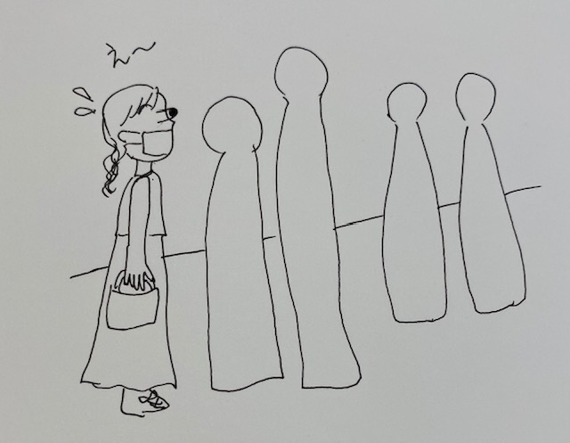 コロナ対策と思い、前の方と少し距離を取って立っているのですが、