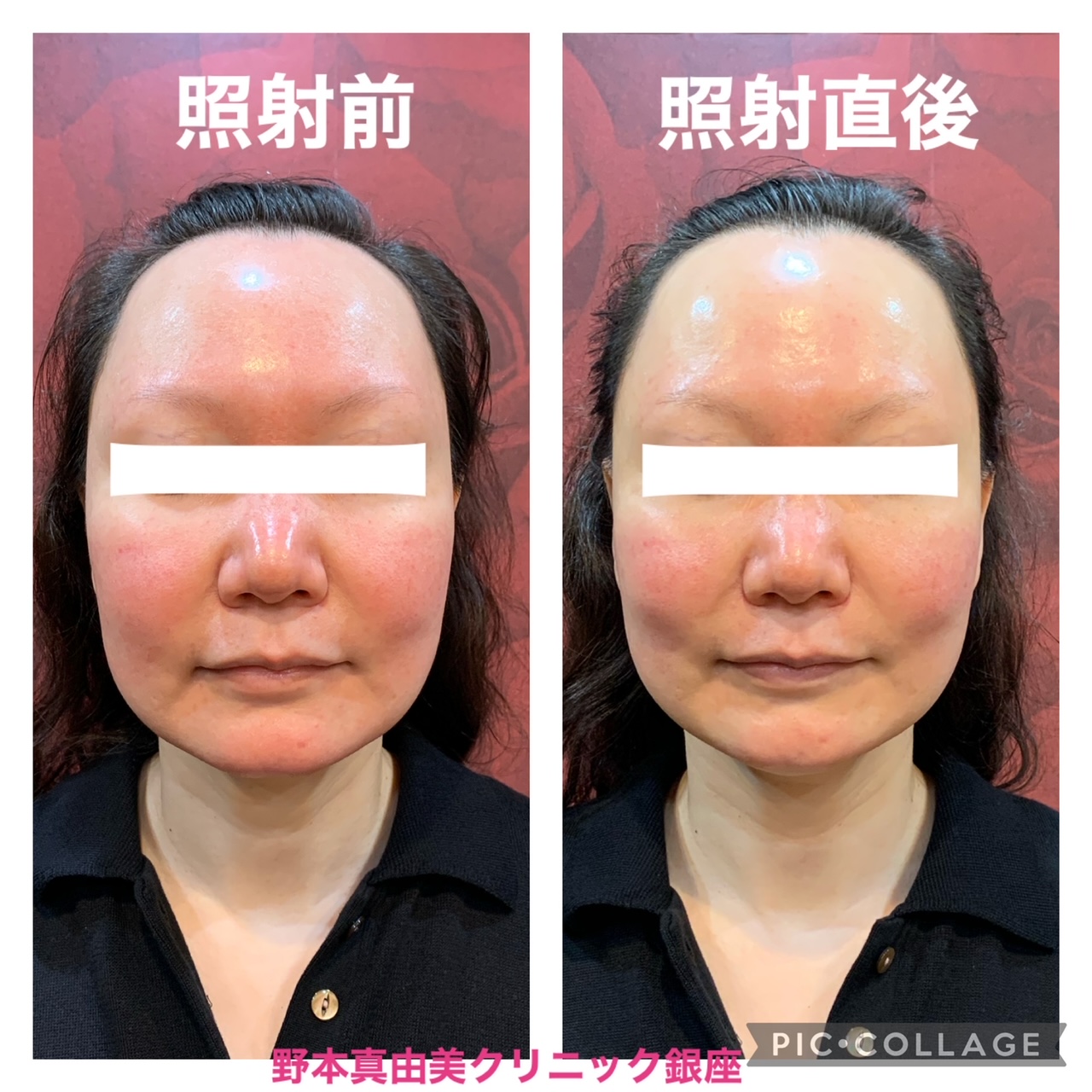 照射前と照射後、患者様も赤みが減った!!と仰るくらいスーッと消えていき、写真でも確認が出来ました????