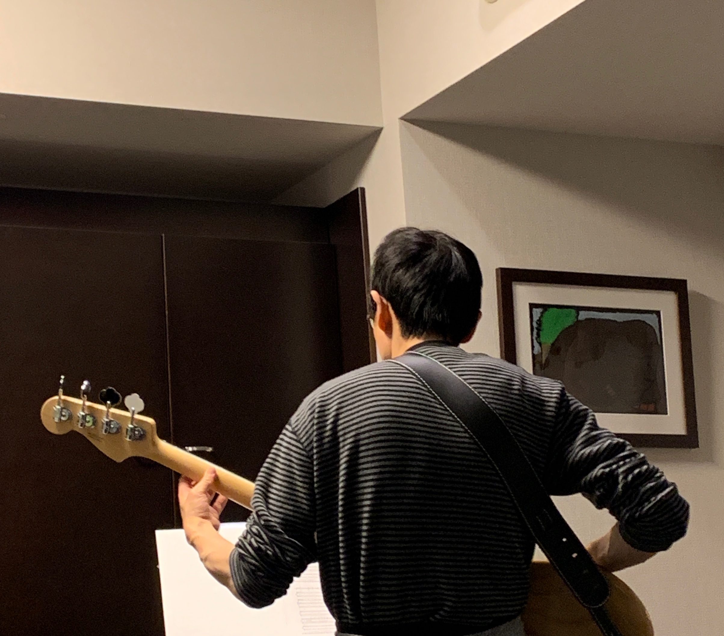 理事長も自宅でエレキベースを練習中。